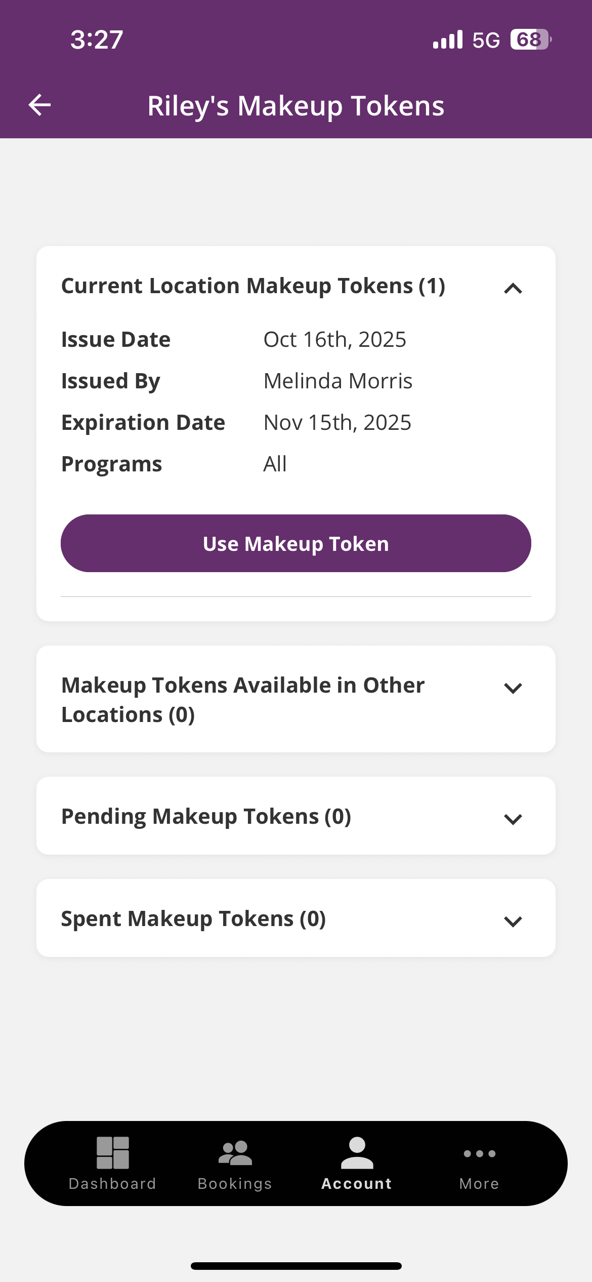 8. Tip: Makeup tokens are issued only after an approved absence (if your school offers makeups). Tokens expire 45 days after being issued, so be sure to schedule your makeup soon.